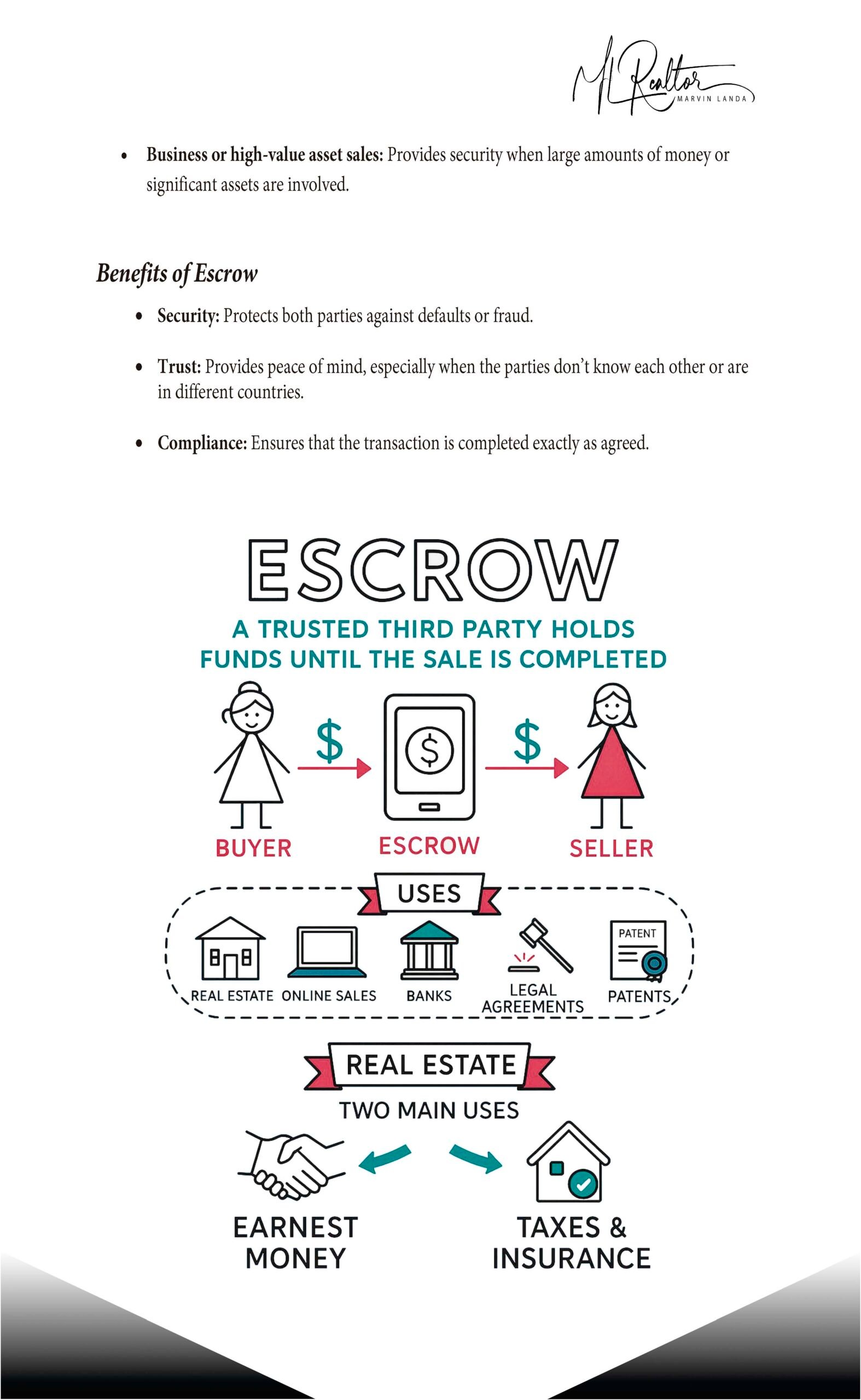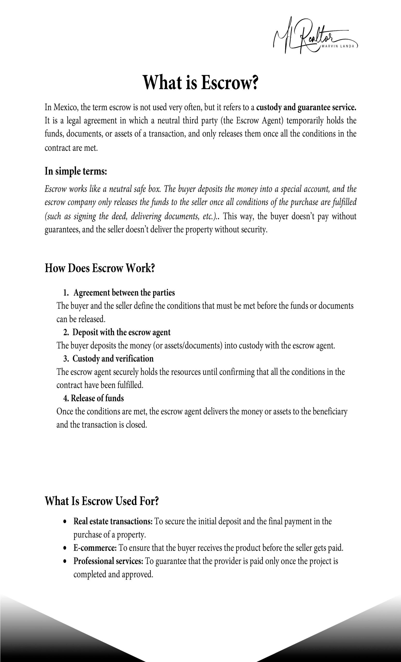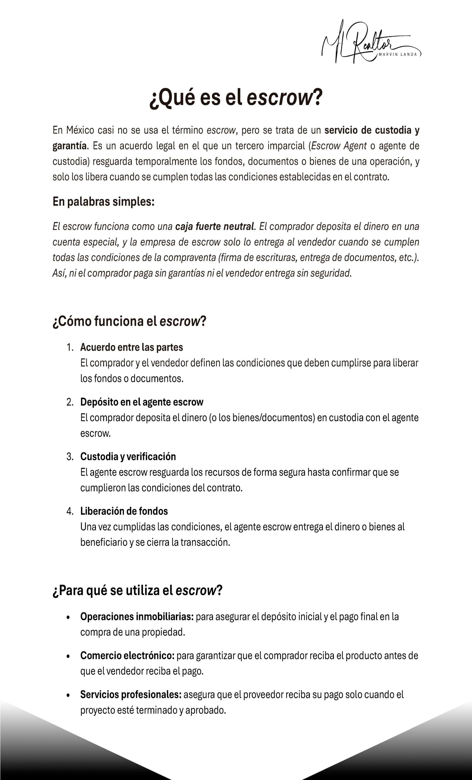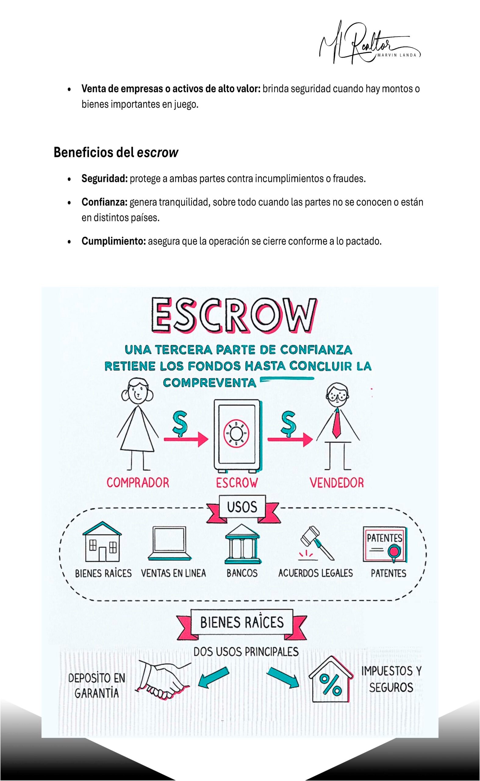 “Con la oferta aceptada, depositas entre el 10% y el 20% del valor en una cuenta de escrow segura. Esto protege tanto al comprador como al vendedor hasta la firma final.”